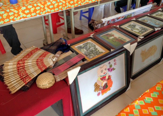 職業訓練として刺繍、絵画、竹細工などの訓練をしている。