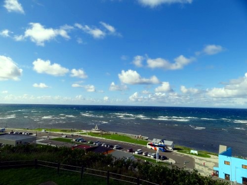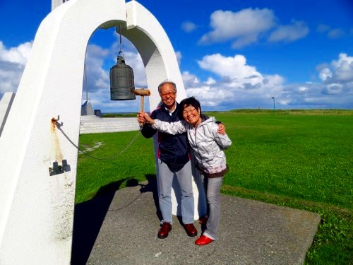 最北端の碑へ行く前に、宗谷丘陵に登りました。宗谷丘陵には様々な記念碑が建っていましたし、オホーツク海が良く見晴らせました。思いがけない出会いもあり、楽しいひと時でした。