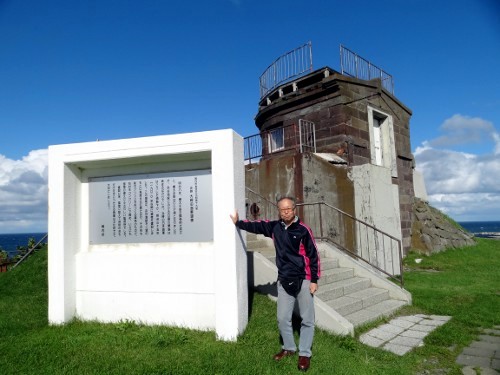 まずは宗谷丘陵に登りました。そこには様々な記念碑が建っていました。そして北の方角には、水平線に樺太が見えました。