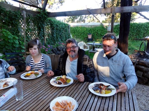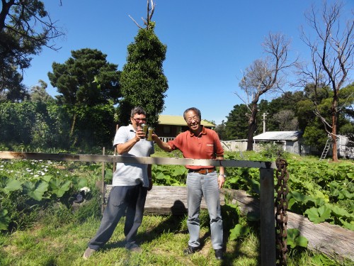 Ian Jones さんと乾杯。二歳でイギリスを離れ 10 代でオーストラリアに移住したアイアンさんは、自力でこの家を作り上げました。何から何まで手作りです。本当にびっくりです。