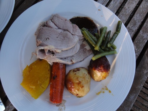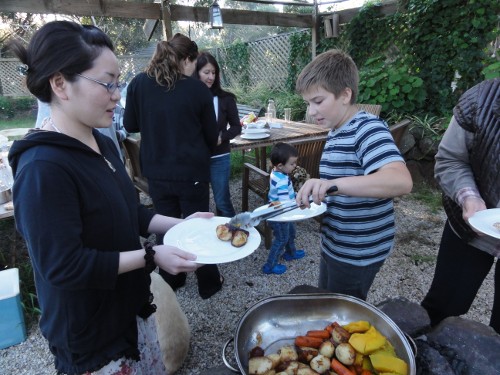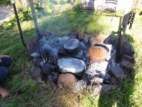 アイアンさんが薪を燃やし、その熱で釜蒸し焼きを作ってくれました。余分な香辛料や添加物は入れずに、素材の力を生かした料理です。