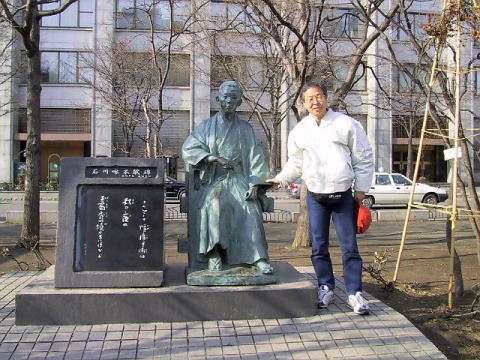 | テレビ塔をバックに | 石川啄木の歌碑と銅像 | ||