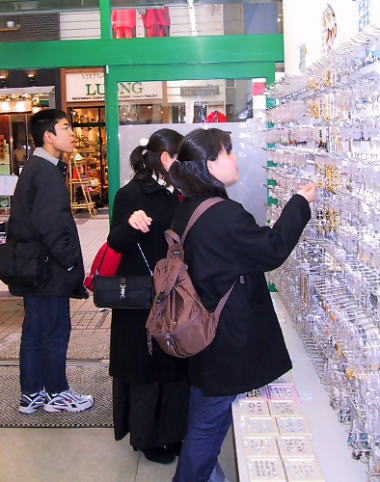| アクセサリーの店で真剣なまなざしの三人 | ガイドさんと一緒に | ||