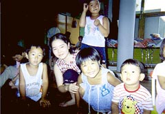 園長先生のお葬式の帰り、空港に行く前にあいあいに立ち寄りました。私がいた頃からお勤めしている先生方はほとんどお葬式に行かれていましたが、古城先生はあいあいにおられました。その時に先生が私たちが使っていた教室まで案内して下さったのですが、残念ながら現在その部屋はいろいろな道具がたくさん置いてあり、子どもたちはいませんでした。しかし気がつけは私たちの周りにはたくさんの子どもたちがいて、「この人誰?」「何しに来たの?」と口々に聞かれました。その時の子どもたちの目の輝きが私のい周りにいる子とは違い、本当にキラキラしていたので、こんな表情の子もいたのか、と驚くと共にあいあいは何か違うぞと思いました。