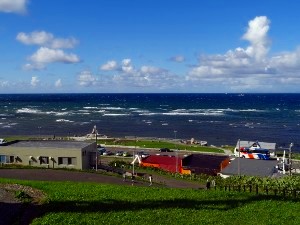 まさに壮観でした。40基もの巨大な風車が風を受けて回っているのです。北海道には、こうした風力発電に適した場所が数多くあるとのこと。たとえ送電網の設備に巨費がかかったとしても、放射性廃棄物の処理費に比べれば大した額ではありません。桁が違います。