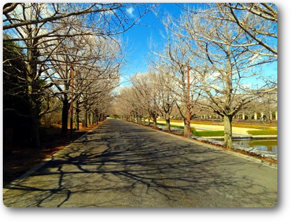 上のスライドの一枚は銀杏並木ですが、まるで映画「第三の男」のラストシーンのロケ現場のような気すらします。秋にはさぞかし素晴らしい景色に違いありません。